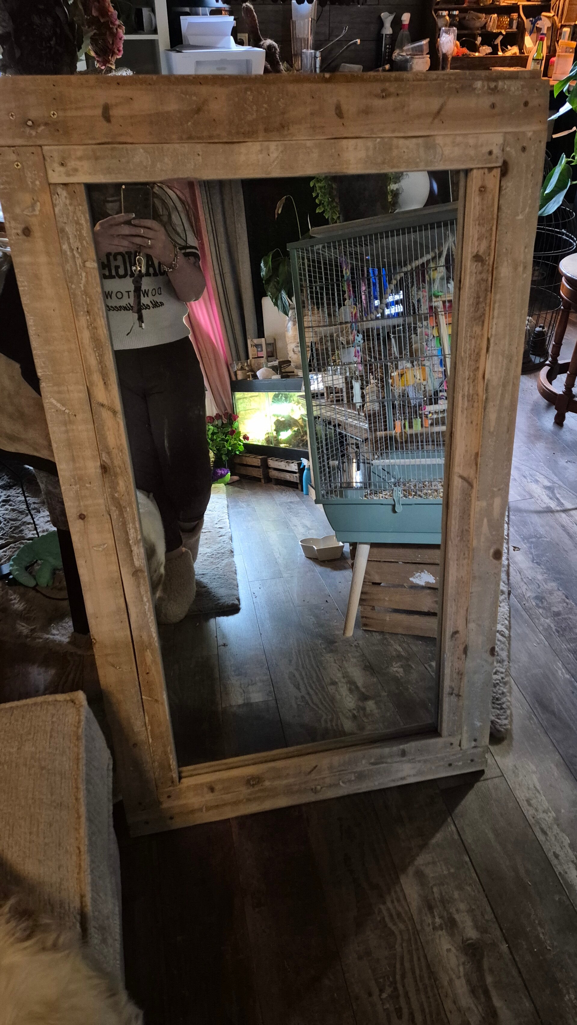 Prachtige grote spiegel met houten lijst