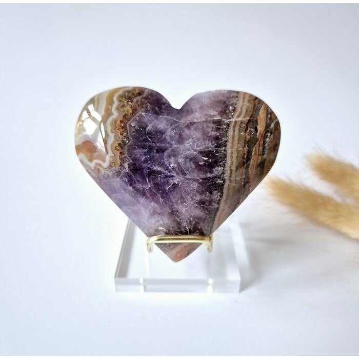 Amethist Agaat Edelsteen Hart (200g) – Inclusief Standaard