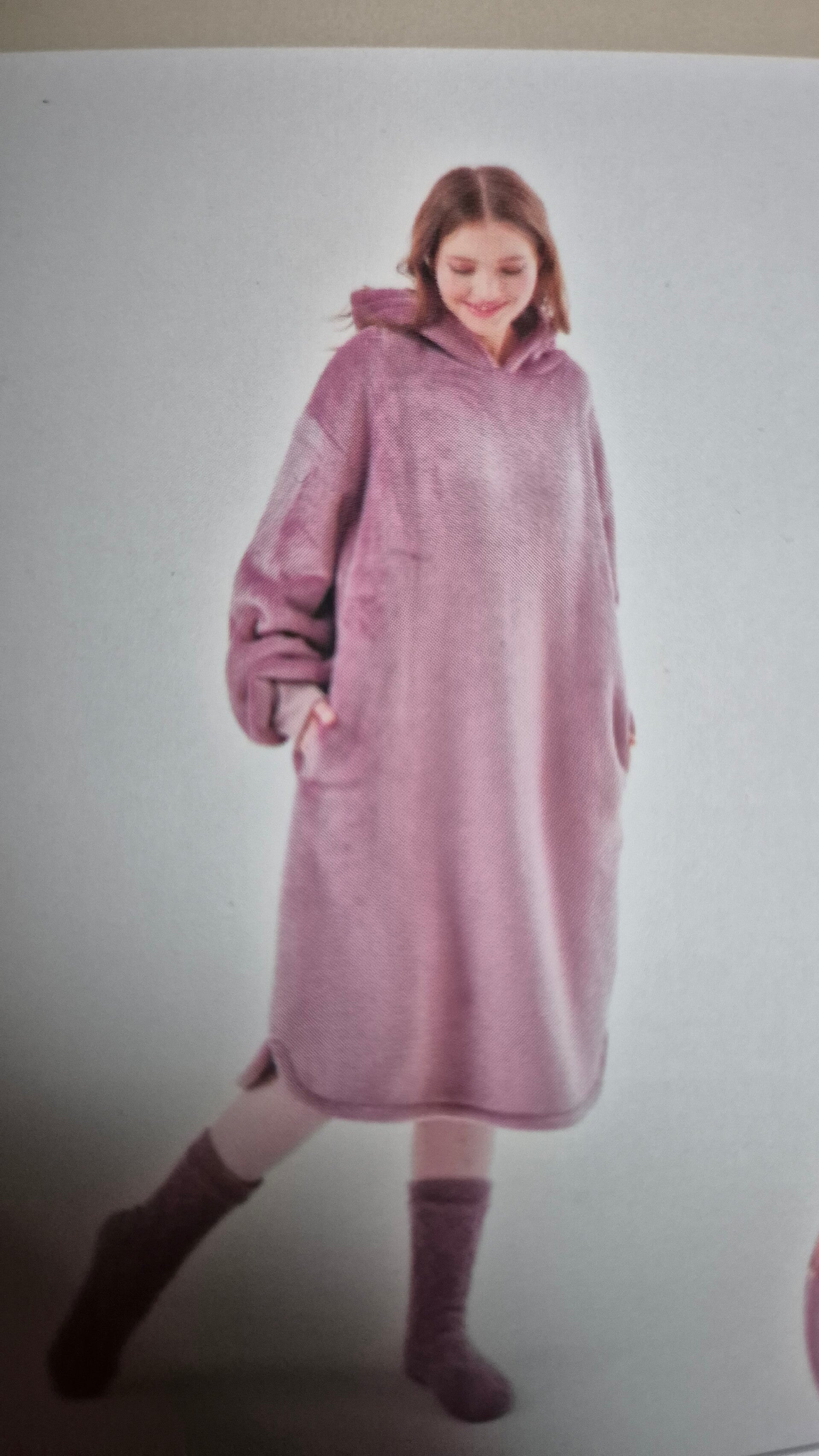 Heerlijke lange snuggie in paars/roze kleur