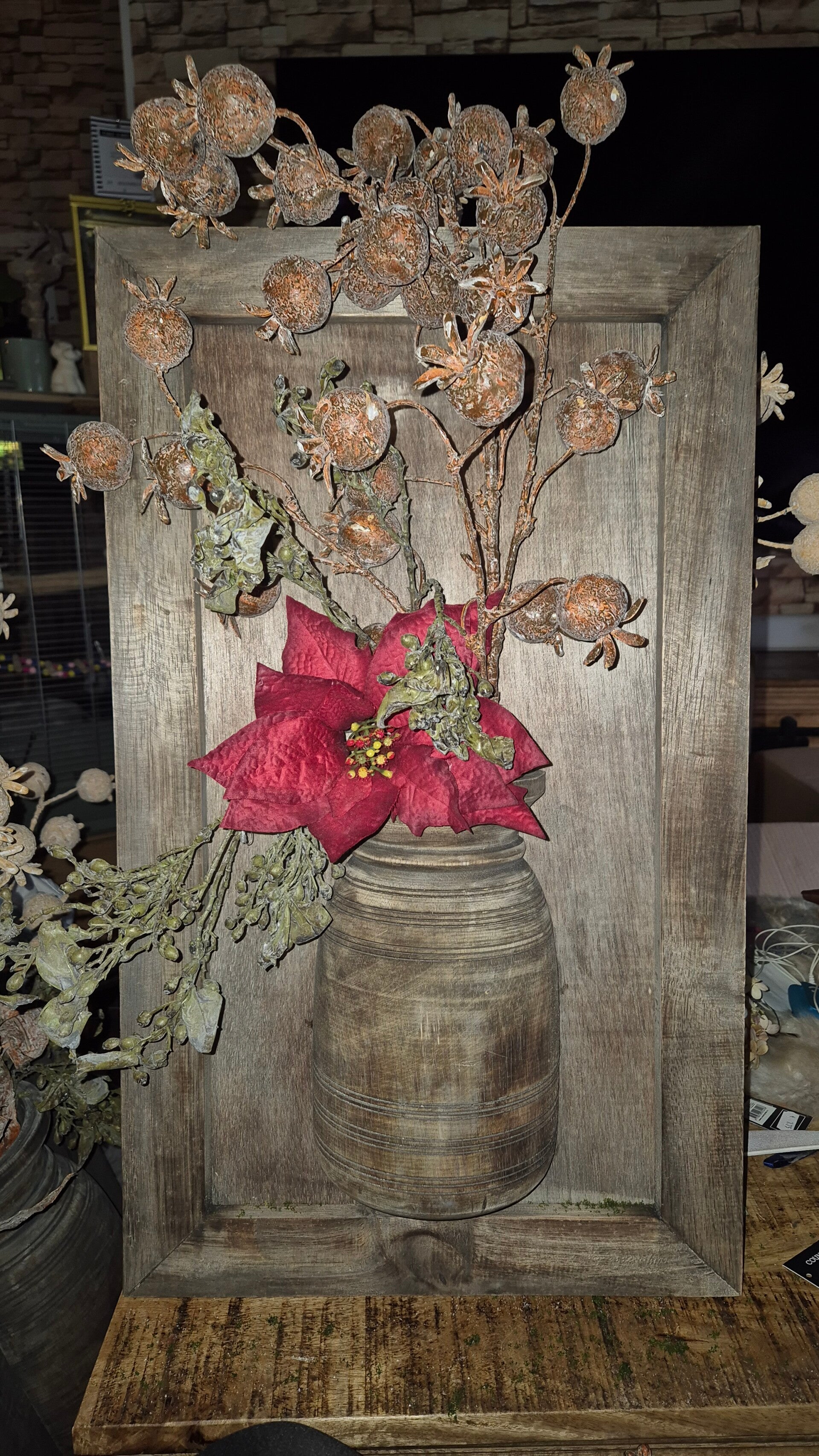 Waanzinnig schilderij met halve nepalese pot waar je je eigen boeket in kan maken.